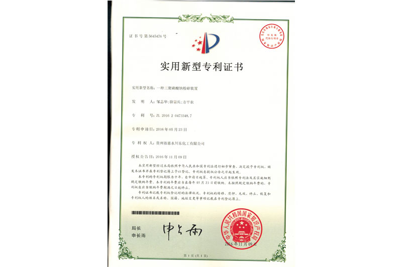 川東化工三聚磷酸鈉粉碎專利技術